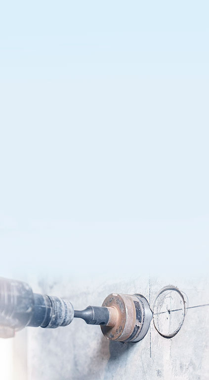 Сверлим подрозетники в монолитных стенах и армированных перекрытиях. Безударная технология исключает трещины — безопасно для несущих конструкций.